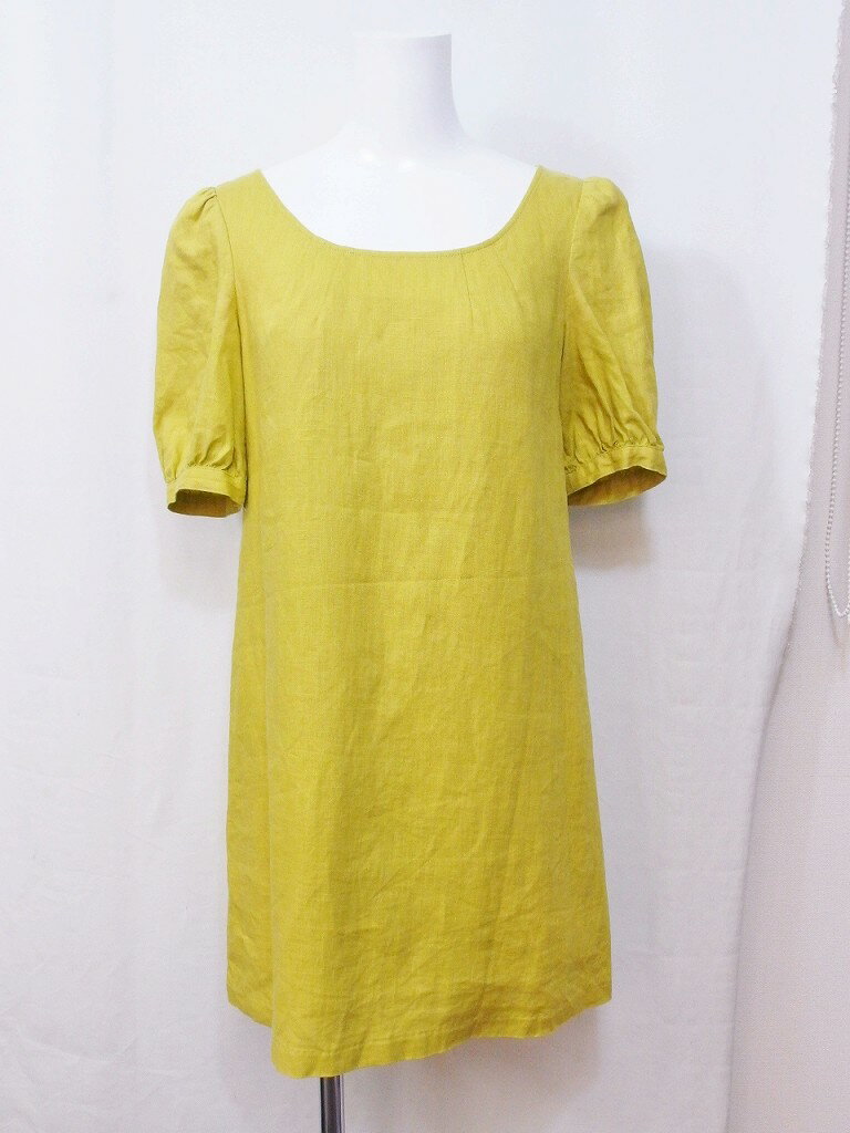【中古】DENDROBIUM デンドロビウム 半袖ワンピース 膝上丈 麻 38 イエローグリーン nm4212181436