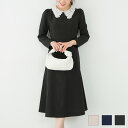 スーパーSALE 新色追加 S/M/L 長袖 ミモレ丈 フェニミン 上品 お呼ばれ オケージョン 卒入学式 オフィス 大人可愛い ジョイントスペース ワンピース レース襟 フィット&フレア Liala×PG 全3色|lpg312-0964【9】