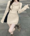 【SALE/29%OFF】miniministore 透かし編みニットショートワンピース韓国風 ミニミニストア ワンピース・ドレス ワンピース ベージュ