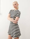 【送料無料】 ノイジーメイ レディース ワンピース トップス Noisy May short sleeve skater dress in black & white stripe BIRCH BLACK