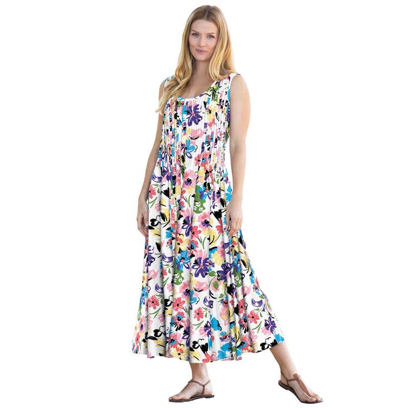 【送料無料】 ウーマン ウィズイン レディース ワンピース トップス Woman Within Women's Plus Size Pintucked Sleeveless Dress White Poppy Blossom