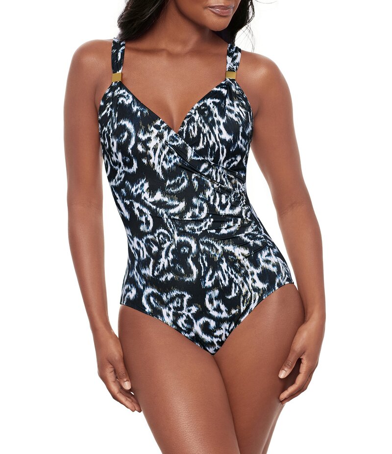 ミラクルスーツ レディース トップス ワンピース Vネック Miraclesuit Adorn Siren V-Neck Underwire Bra One Piece Swimsuit Black/white ホワイト