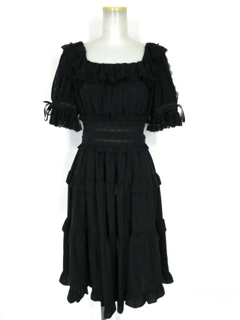 リサイクル品につきましては、記載の無い軽微なしみ・汚れ・傷等がある場合がございます。予めご了承の上ご購入ください。詳細はこちら ■商品説明■【PRICE DOWN】 美しいチュールレースが印象的な"Sirenetta"(シレネッタ)シリーズのティアードドレスです。五分袖くらいです。ウェストはシャーリングになっていて自然にフィットしてくれるデザインです。付属のリボンタイプのウエストベルトを着けると引き締まった印象になります。ウェストベルトの代わりにお手持ちのコルセットなどをするだけでもガラッと雰囲気が変えられます。 ■商品の状態: A ■表記サイズ:M ■実寸:ワンピース:裄丈53 身幅37 肩からの着丈104.5 (cm) ■色:黒 ■素材:表地・レースポリエステル100% 裏地ポリエステル55% レーヨン45%