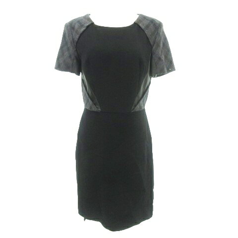 【中古】スポーツマックス マックスマーラ SPORT MAX 美品 ワンピース 半袖 ボートネック 巻きスカート ひざ丈 チェック柄 イタリア製 厚手 38 約Mサイズ 黒 ブラック ■GY09 レディース 【ベクトル 古着】 240630