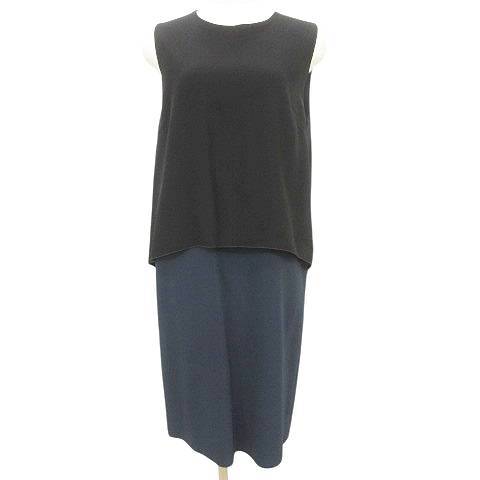 【中古】未使用品 スポーツマックス マックスマーラ SPORT MAX タグ付き フェイク レイヤード ワンピース ひざ丈 ノースリーブ ドレス イタリア製 36 Sサイズ 黒 ネイビー レディース 【ベクトル 古着】 250510