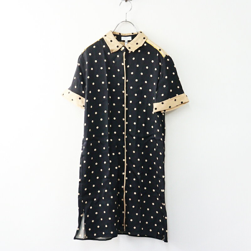 【期間限定価格】エスカーダ スポーツ ESCADE SPORT ドットプリント ヴィスコース シャツワンピース 34 ブラック×ベージュ┃【2400014667806】【中古】