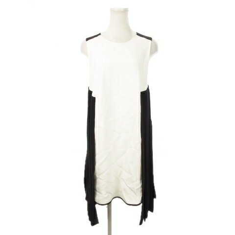【中古】スポーツマックス マックスマーラ SPORT MAX ワンピース ミニ ノースリーブ シルク混 絹 フェイクレイヤード 切替 プリーツ 42 L 白 ホワイト 黒 ブラック /MN2 ■GY99 レディース 【ベクトル 古着】 251125