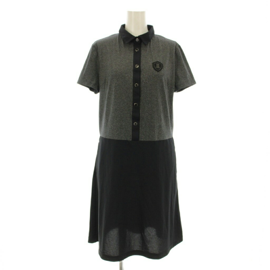 【中古】ランバン スポール LANVIN SPORT ポロワンピース ひざ丈 半袖 切替 ワッペン 40 グレー 黒 ブラック VLN794126 /KU レディース 【ベクトル 古着】 251027