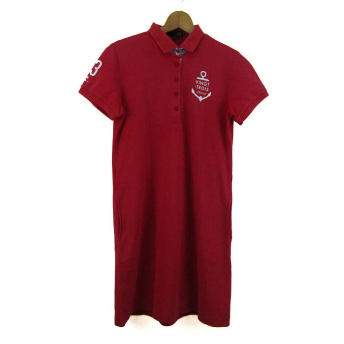 23区SPORT ニジュウサンクスポーツ ポロワンピース トップス 半袖 ゴルフウエア レディース M-Lサイズ レッド 【中古】