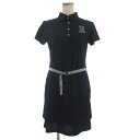【中古】RALPHLAUREN SPORT(ラルフローレンスポーツ) ワンピース 半袖/ひざ丈/ポロシャツワンピ/エンブレム 黒×パープル