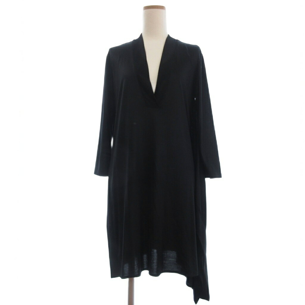 【中古】スポーツマックス マックスマーラ SPORT MAX ワンピース チュニック ミニ 七分袖 Vネック アシンメトリー シルク M 黒 ブラック レディース 【ベクトル 古着】 251110