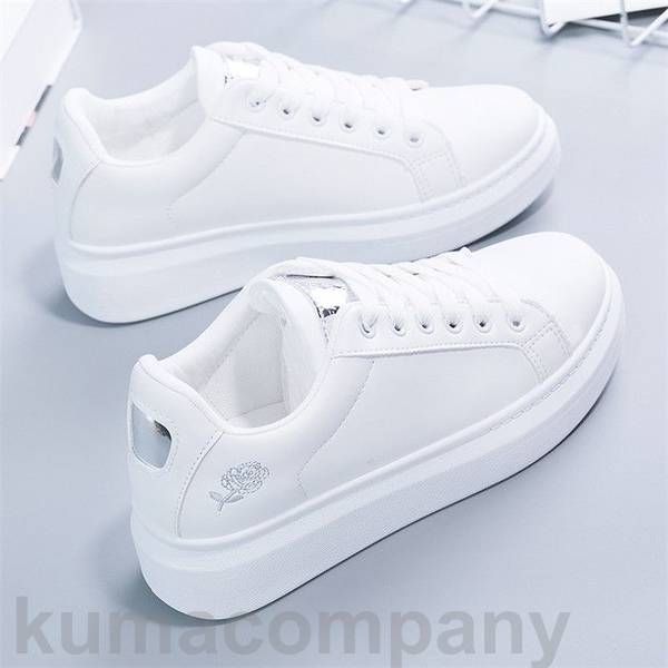 【楽天スーパーSALE割引商品】スニーカー レディース 靴 くつ PUレザー ローカット 刺繍 フラットシューズ 身長アップ4cm 春 夏 白スニーカー 無地 革靴 厚底 フラット シンプル スポーツ 可愛い かわいい シンプル カジュアルシューズ ファッション