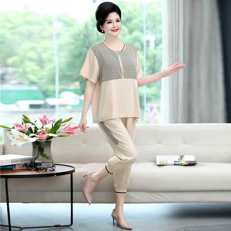 セットアップ レディース 中高年 春夏 大きいサイズ 半袖 Tシャツ 薄手 ポリエステル 九分丈パンツ ゆったり カジュアル スポーツ 普段使い おしゃれ ブラック ベージュ