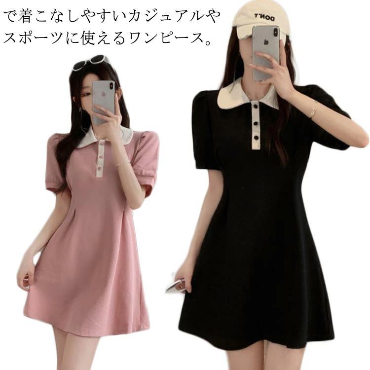 ポロシャツワンピース レディース ゴルフウェア ワンピース ゴルフワンピース 可愛い Tシャツ カジュアル ゴルフ用 ポロワンピース 韓国 ミニワンピース ポロネック POLOネック 春 夏 秋 半袖 ショート丈 テニスウェア スポーツ バイカラー