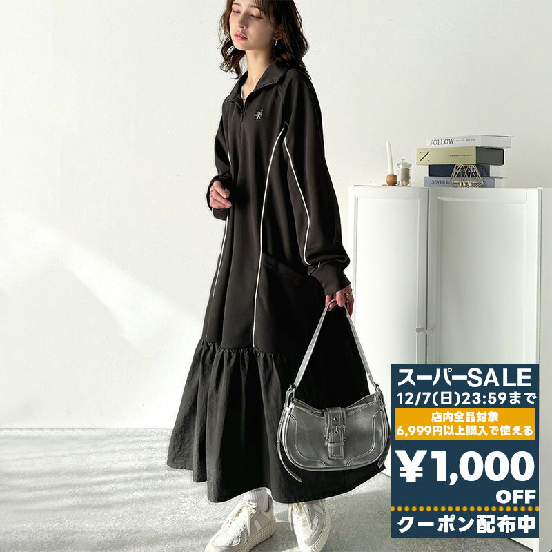 【スーパーセール 】\先着順/72H限定 1000円OFF クーポン 【 クラシカルエルフ classical elf 】 ワンピース レディース スポーツ MIIX 胸元 入り ドッキング ハーフ ジップ パイピング ジャージ ロング丈 大きいサイズ 秋 冬 classical elf ce1010366