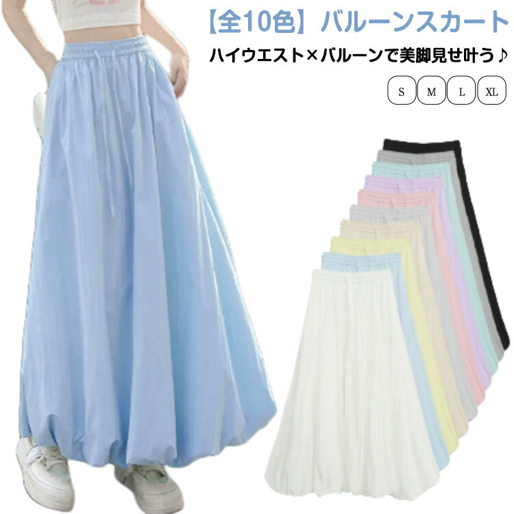 レディース ふんわり フレアスカート スカート 春夏向け 無地 バルーンスカート カジュアル マキシ丈 ロングスカート ボトムス きれいめ 可愛い ハイウエスト 体型カバー 大きいサイズ S M L