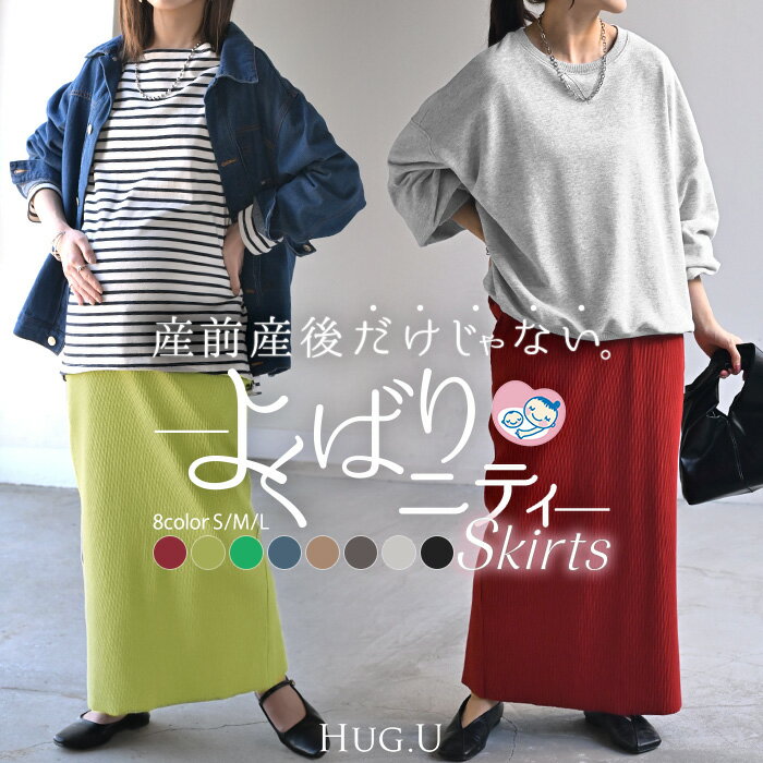 スカート マタニティ セルフ カット Iライン レディース ロング ロングスカート ボトムス ボトム マキシ マキシスカート 無地 長い ゆったり タイトスカート きれいめ ハイウエスト ストレッチ おしゃれ カジュアル 黒 グレー 春 冬 HUG.U