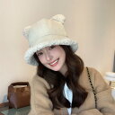 新しいかわいい熊の毛の帽子の子供の冬のベルベットの保温漁師の帽子の頭の周りには顔の小さな盆帽の女性がいます