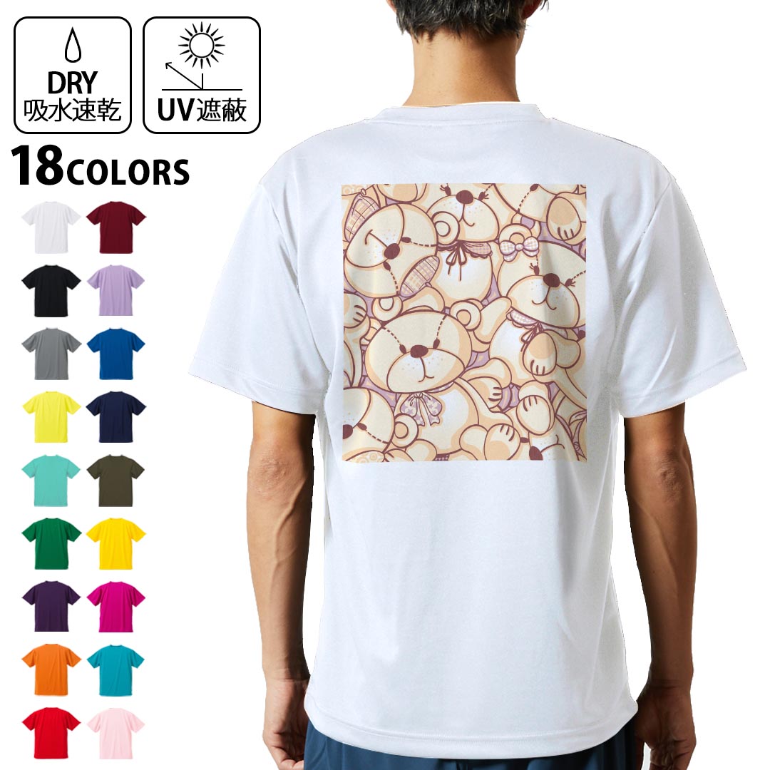 ドライTシャツ バックプリント メンズ 吸水 速乾 DRY 選べる18カラー! 半袖 デザイン 背中 スポーツ ティーシャツ T shirt 005714 熊‘模様 ぬいぐるみ