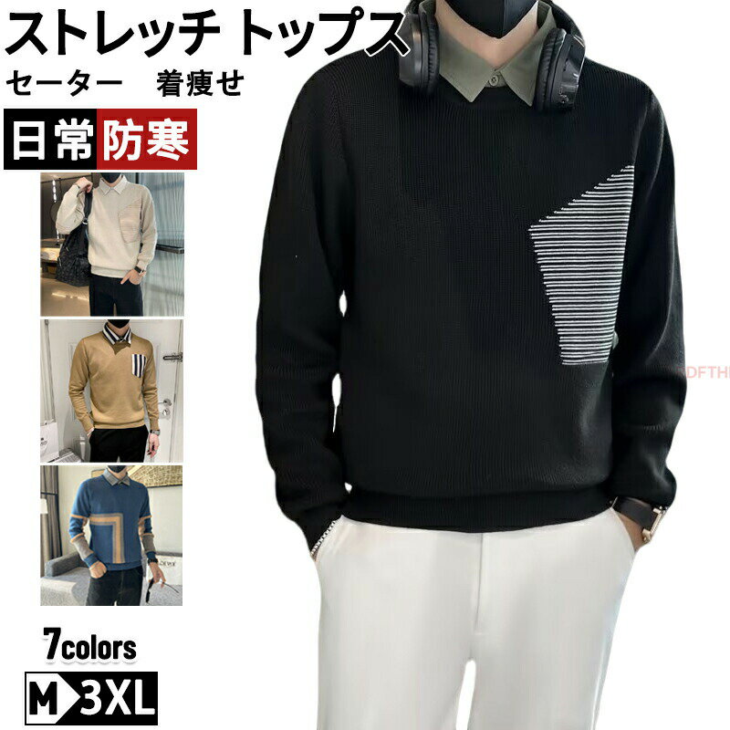 重ね着 セーター 折り襟 メンズ 着痩せ ストレッチ トップス 偽2点セット フィット 高級感 ストレスフリー 耐久性 快適 ファッション インナー 肌着 スタイルアップ こなれ感 フォーマル デイリー 日常 送料無料