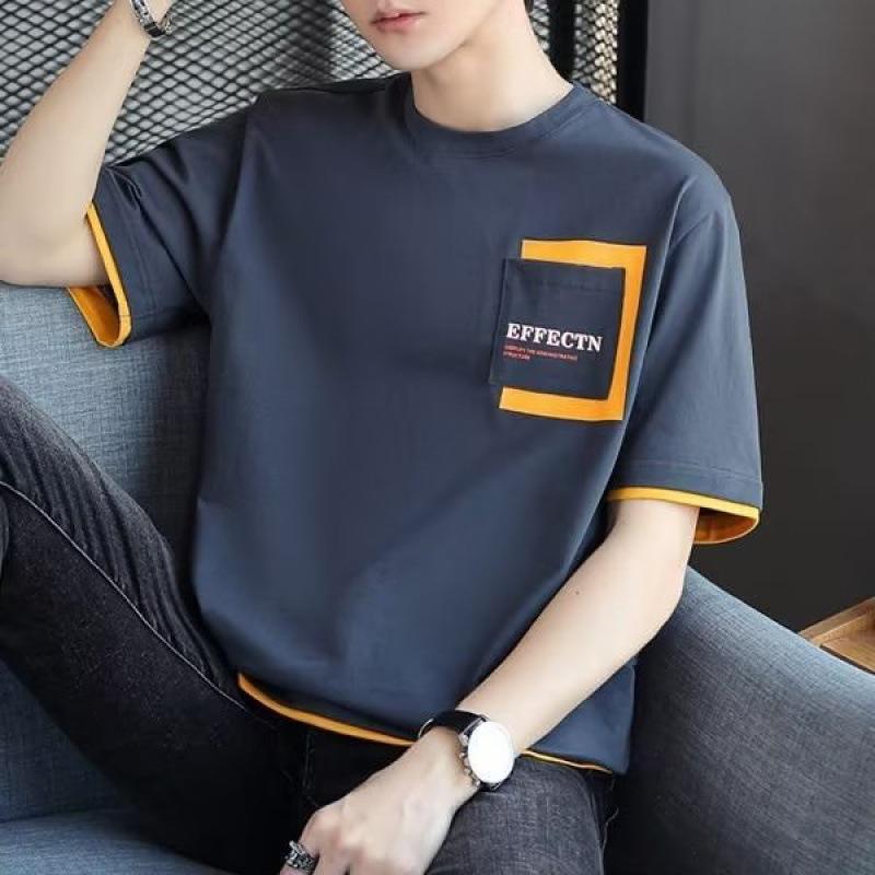 ゆったり トップス メンズ 半袖 重ね着風 丸襟 カジュアル 柔らかい 大人 チェック柄 tシャツ スタイルアップ サイドスリット トレンド 薄手 涼しい カットソー 上品 快適 お洒落 韓国風 大きいサイズ 通学 おしゃれ 通勤 5分袖