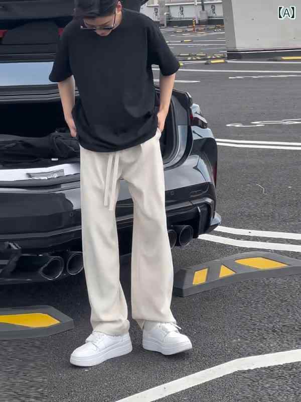 ・カテゴリ: カジュアルパンツ・スタイル: アメリカンヴィンテージ風・テイスト: 若者向け・: ベーシック・パンツシルエット: ワイド・パンツ丈: フルレングス・ウエスト: ミドルライズ・フロント: ドローストリング・厚さ: 普通・柄: 無地・主な素材: ポリエステル68%・素材名: 化学繊維混紡・着用シーン: カジュアル・裾: ストレート・伸縮性: ややあり・対象: ティーン・対象性別: 男性・カラー展開: アプリコット、ブラック・サイズ展開: M、L、XL、XXL、XXXL