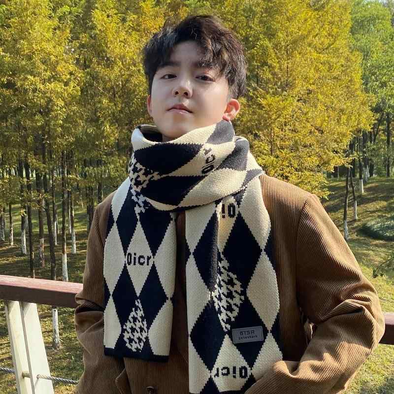 マフラー 男性用 冬物 ギフト 彼氏向け ネックウォーマー メンズ 高級感 格子柄 ウール 春 スヌード