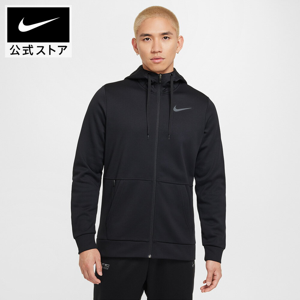 【40%OFFクーポン対象 11.19 0:00〜11.27 1:59】ナイキ サーマ メンズ フルジップ トレーニングパーカー NIKE ジム トレーニング ウェア トップス パーカー トレーナー フード cu6232-010 防寒 フィットネス 黒 ギフト