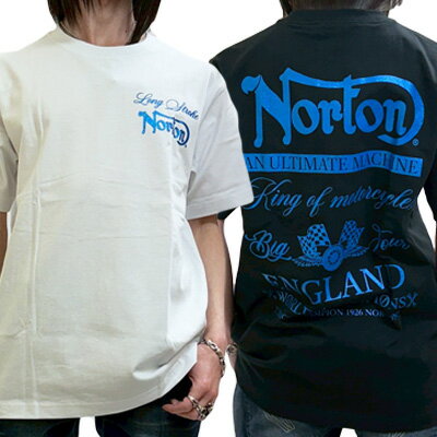 Norton Tシャツ ブルーラメプリントTEE 252N1018 ブラック ホワイト 黒 白【 2025 Tシャツ / ノートン 半袖 / メンズ / バイカー バイク / ストリート / アパレル 服 / メール便可 / あす楽 】
