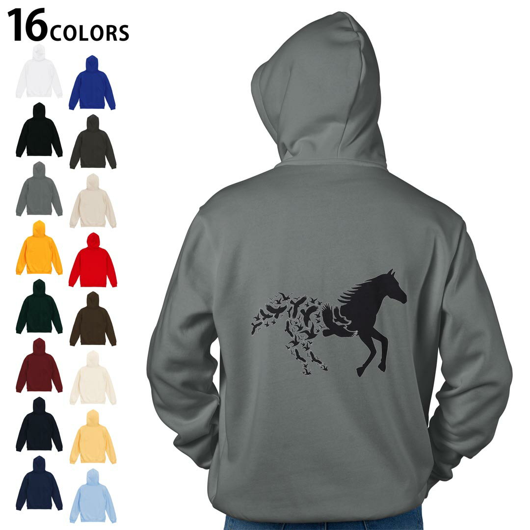 選べる16カラープルオーバー パーカー バックプリント フーディ メンズ レディース ユニセックス 長袖 デザイン S M L XL 2XL hoodie 013313 馬 シルエット 鳥