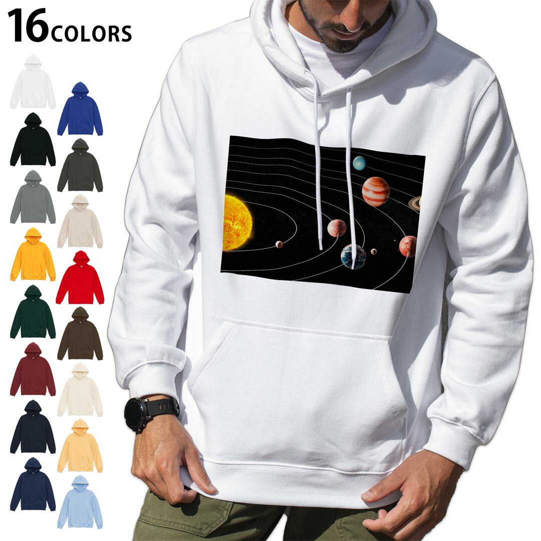 選べる16カラープルオーバー パーカー フーディ メンズ レディース ユニセックス 長袖 デザイン S M L XL 2XL hoodie 015918 太陽系 宇宙 惑星