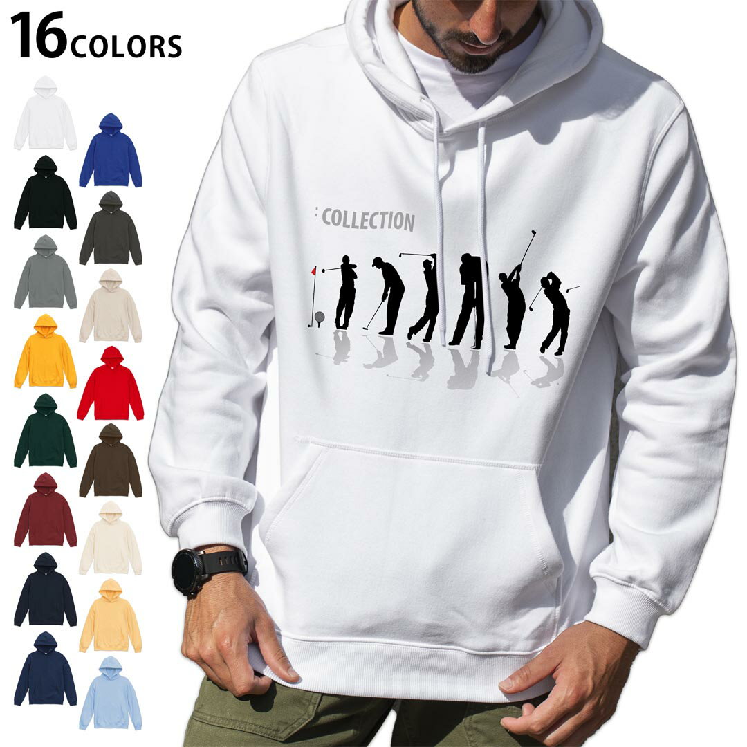 選べる16カラープルオーバー パーカー フーディ メンズ レディース ユニセックス 長袖 デザイン S M L XL 2XL hoodie 000140 ゴルフ ショット イラスト