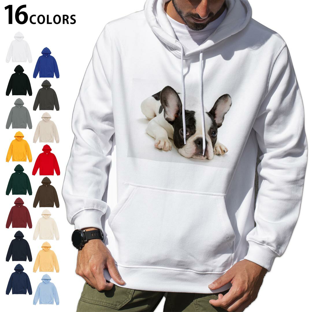 選べる16カラープルオーバー パーカー フーディ メンズ レディース ユニセックス 長袖 デザイン S M L XL 2XL hoodie 000889 犬 フレンチブルドック