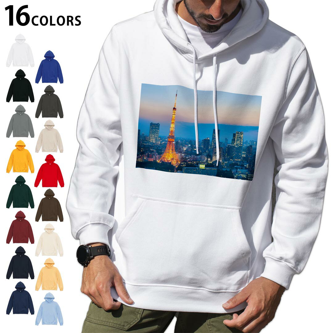 選べる16カラープルオーバー パーカー フーディ メンズ レディース ユニセックス 長袖 デザイン S M L XL 2XL hoodie 014734 東京タワー 写真