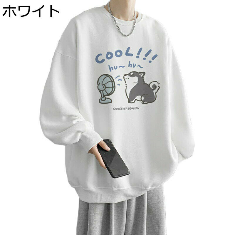 トレーナー メンズ 秋冬服 ロング Tシャツ スウェット 犬柄 可愛い 大きいサイズ 長袖 カットソー リブ袖 プルオーバー 軽い 柔らかい 快適 かっこいい カジュアル 部屋着 普段着 贈り物 アウター