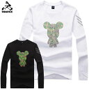 BOUNCE バウンス BIG HEAD MILITARY ミリタリークマ ラインストーン ロゴ 長袖 ブラック ホワイト メンズTシャツ トップス かっこいい おしゃれ 人気 ブランド 大きい ビッグサイズ ストリート ITALY