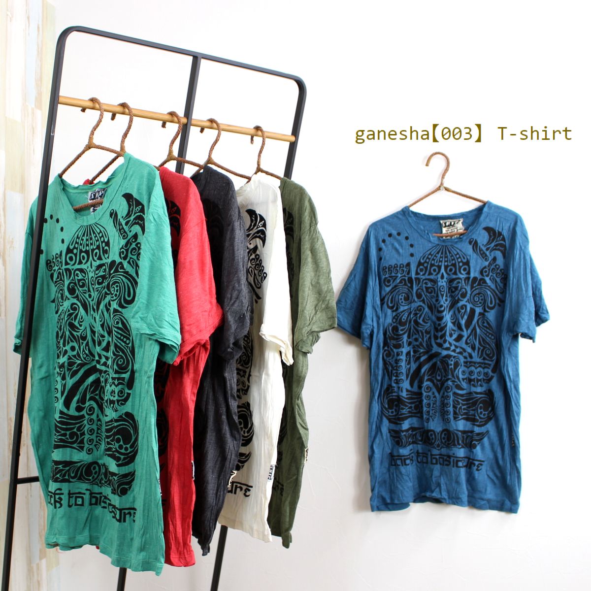 ガネーシャ柄 Tシャツ 003全6色 男女兼用 エスニック アジアン メンズ レディース ユニセックス 民族 ゆったり シワ加工 クリンクル加工 イベント フェス 衣装 ユニフォーム ヨガ