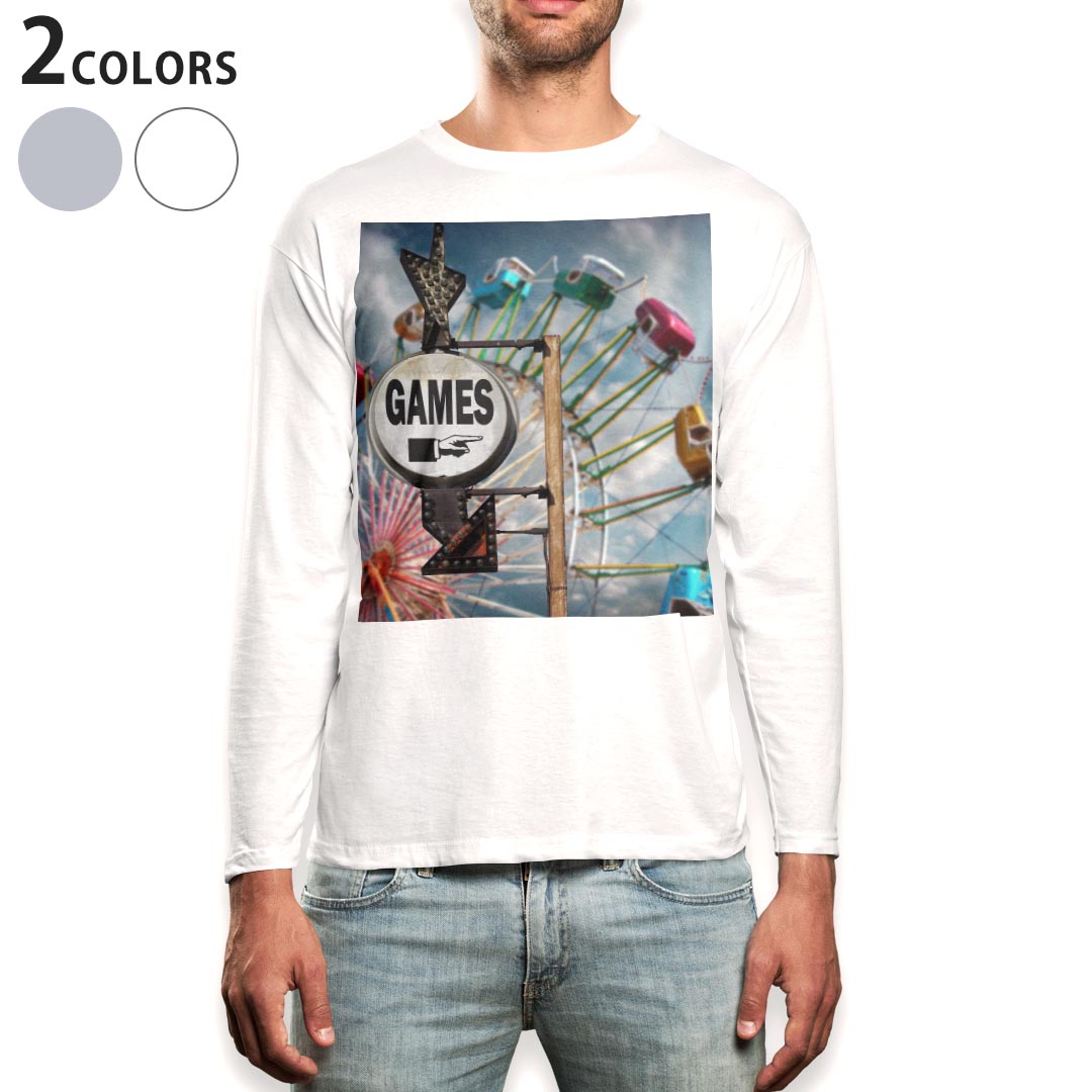 ロング tシャツ メンズ 長袖 ホワイト グレー デザイン XS S M L XL 2XL Tシャツ ティーシャツ T shirt long sleeve 011175 看板 英語 ビンテージ