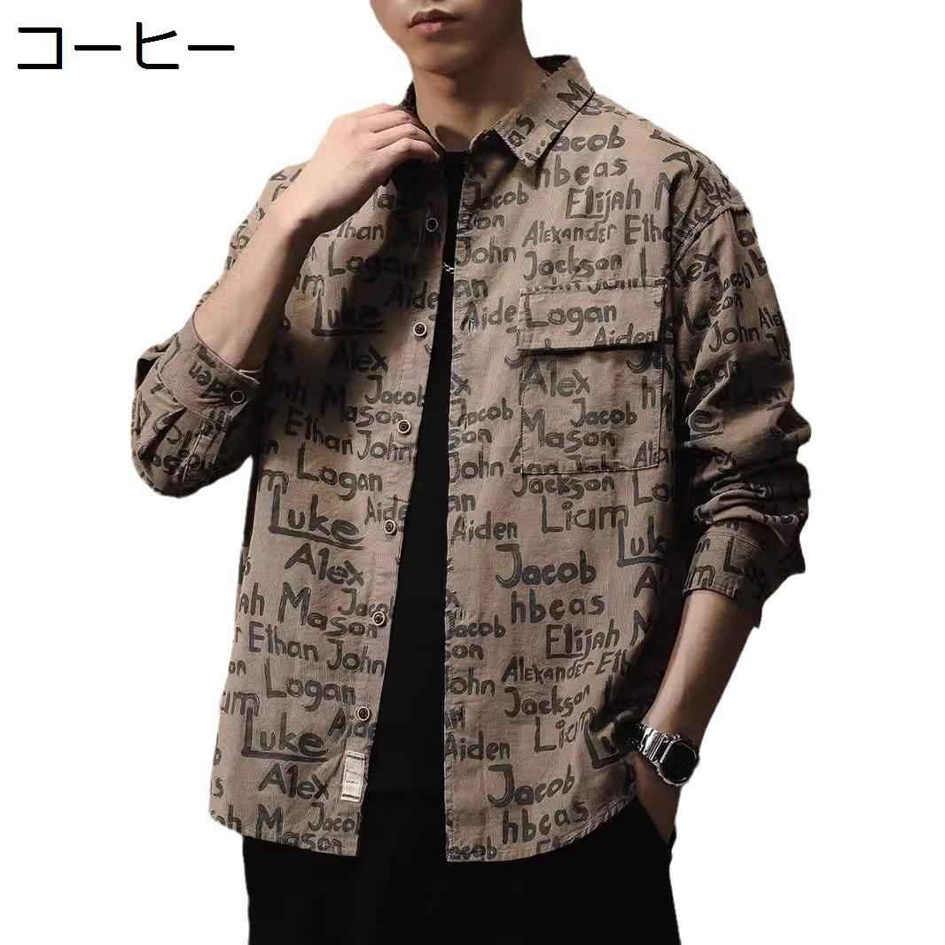 長袖シャツ オックスフォードシャツ メンズ 春秋 英字柄シャツ ボタンダウン 耐磨 ビックシルエット 薄手 サラサラ オープンカラー 吸汗通気 モード系 シンプル お揃い 襟付き ストリート クール