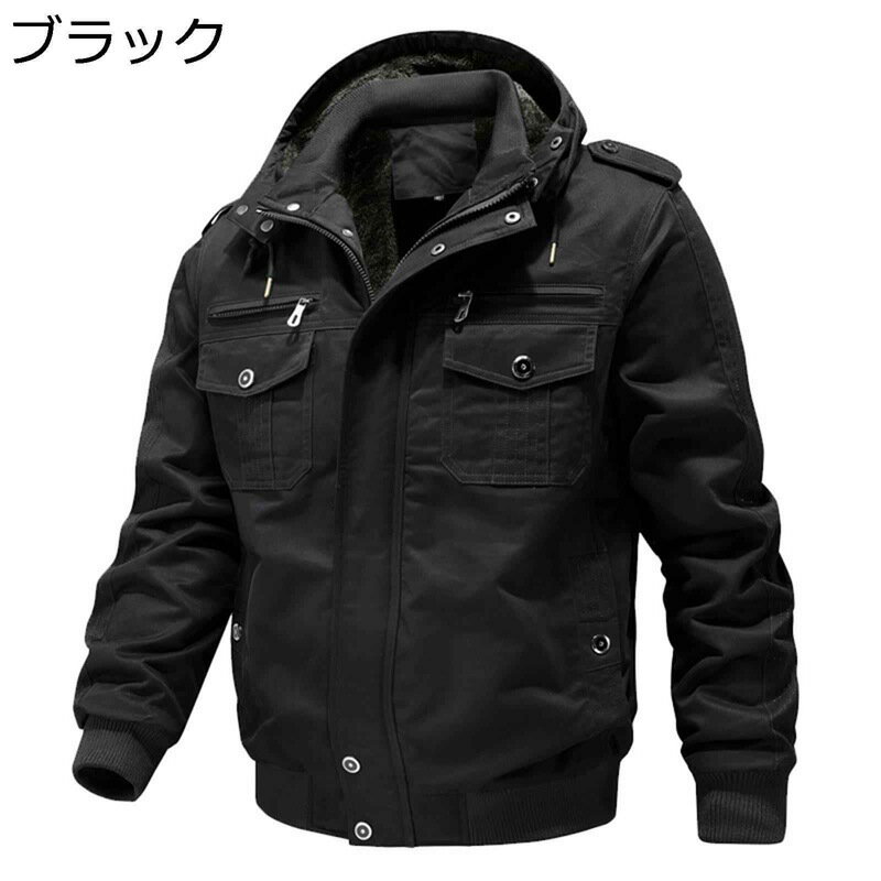 裏ボアジャケット メンズ 厚手 コットン ミリタリージャケット 冬 フード着脱可 ジャンパー 耐磨耗 裏起毛 アウター 保温 防寒 ショート丈 作業着 フライトジャケット かっこいい 普段着 アウトドア