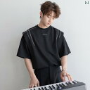 メンズ ファッション 春夏 秋冬 かっこいい オシャレ モテ 男性用 紳士服 服 韓国 シンプル 大人 ファッション 明るい ライン フライング ショルダー 半袖 T シャツ ヘビー デコンストラクション スタイル