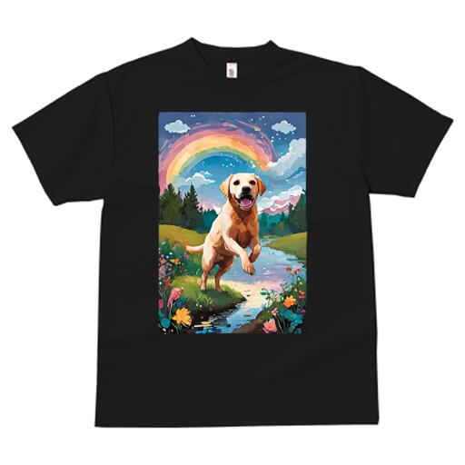 ラブラドールレトリバー Tシャツ 犬愛 ユニークデザインメンズ キッズ 犬ファン 半袖 春夏 プリント 大人カジュアル かわいい 人間用 ギフト 個性的 猛暑対策 虹 ラブラドールレトリバー 川 花 風景