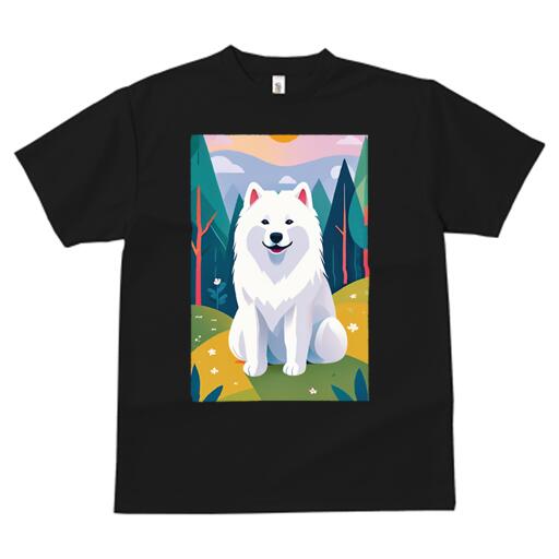 サモエド Tシャツ 犬愛 ユニークデザインメンズ キッズ 犬ファン 半袖 春夏 プリント 大人カジュアル かわいい 人間用 ギフト 個性的 猛暑対策 背景 サモエド 木 自然 山