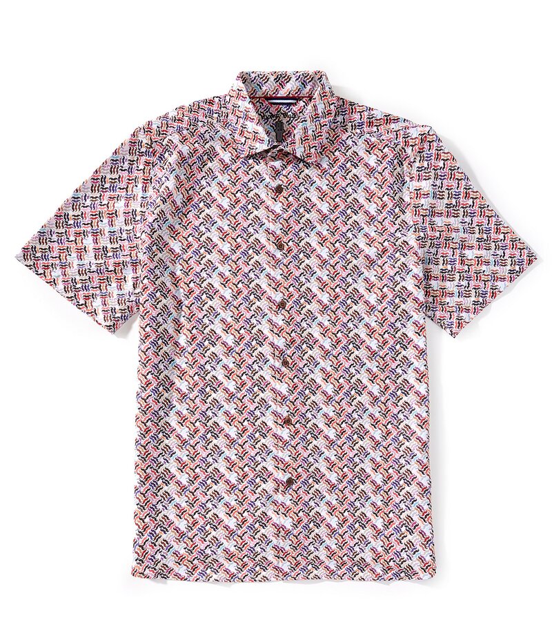 ビスコッティ メンズ トップス シャツ プリント Visconti Mustache Print Stretch Short Sleeve Woven Shirt Assorted