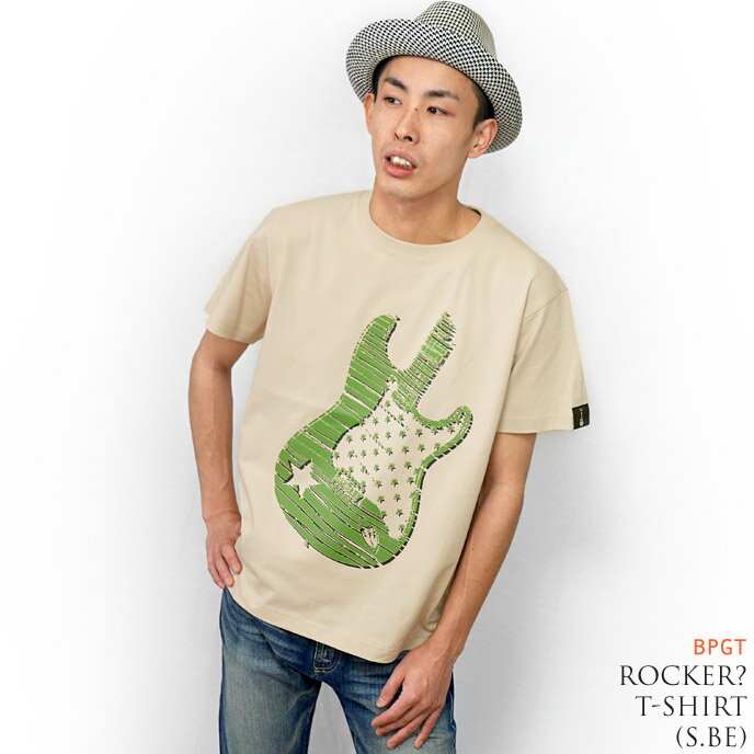 Rocker? Tシャツ (サンドベージュ) BPGT sp029tee-sbe -X- 半袖 Beige Guitar ギター柄 ロッカー ロックTシャツ ROCKNROLL T-shirt バンド ライブ フェスコーデ メンズ レディース ユニセックス グラフィックデザイン バックプリント【RCP】