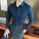 シャツ メンズ 秋 春 カジュアル フォーマル 長袖 トップス おしゃれ フランス 大きい ポインテッドカラー スリム ビジネス