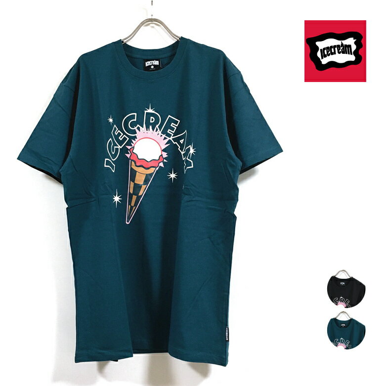 【 アウトレット 】 ICECREAM アイスクリーム SPARK 半袖 Tシャツ メンズ 【 送料無料 】 クルーネック ロゴ プリント tshirt ショートスリーブ トップス ストリート系 ヒップホップ ファッション 黒 ブラック 緑 グリーン M L XL 2XL USサイズ