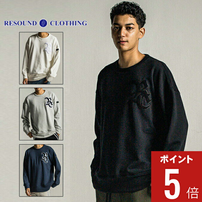 【期間限定ポイント5倍】RESOUND CLOTHING リサウンド クロージング RC CHENILE VELOURS FLEECE DORP TRAINER / サガラ刺繍ワッペン 裏起毛 ルーズトレーナー アクティブ ロゴ アウトドア オーバーシルエット 1-3 S-L RC34-C-007