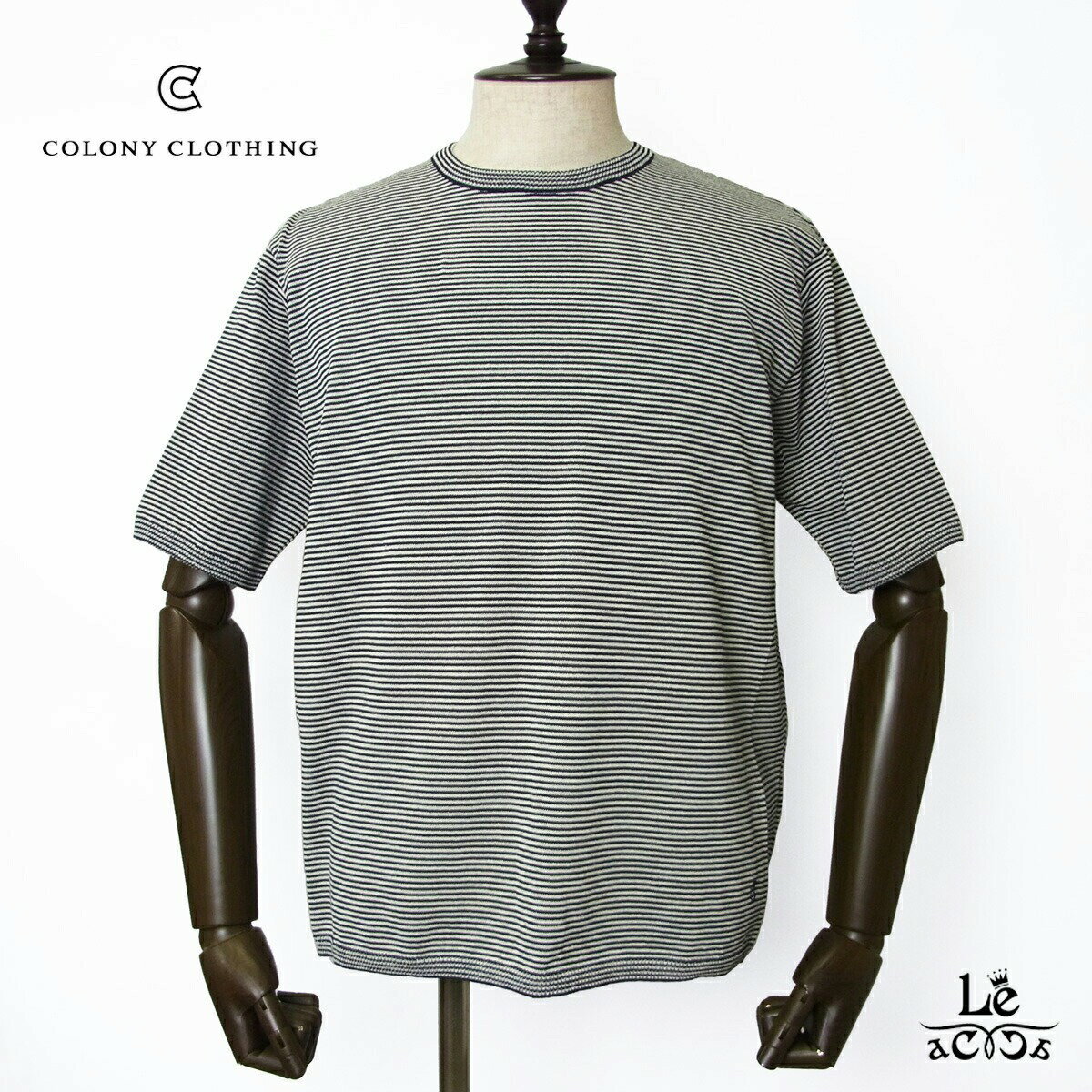 【30%OFF】COLONY CLOTHING コロニークロージング 和紙 ボーダー ニット クルーネック Tシャツ カットソー 半袖 メンズ ネイビー ブランド 日本製 国内正規品 24200 【送料無料】