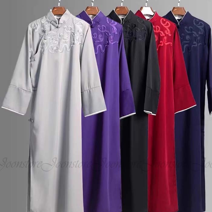 チャイナ服 メンズ チャンパオ 長袍 中華服 男性用 ロング丈 チャイナシャツ 中国伝統衣装 漫才ウェア 唐装 漢服 コスプレ コスチューム ハロウィン 衣装 漫才服 男性用 舞台衣装 ステージ衣装 5色